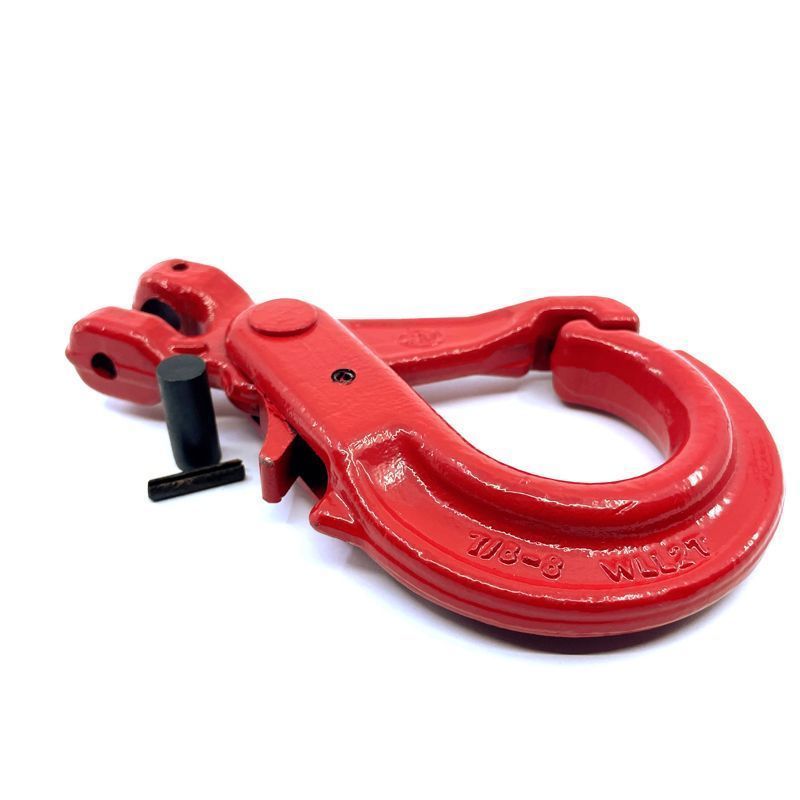 Samozajišťovací hák s vidlicí pevnostní třídy 80 je vyroben z vysoce kvalitní oceli a slouží jako spojovací komponent pro stavební a lesnický průmysl. Jeho povrchovou úpravou je KOMAXIT v červené barvě. Používá se především ve spojení s lanem nebo řetězem ke zvedání či spouštění břemen. Správný design, pečlivé kování, precizní kontrolované kalení a temperování poskytují maximální pevnost bez nadměrné hmotnosti a objemu. K připevnění na řetěz se používá zajišťovací čep, který je upevněn závlačkou, což umožňuje rychlou instalaci háku bez použití spojovacího článku.