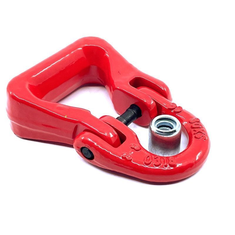 Spojovací článek na textilní pásy pevnostní třídy 80 je vyroben z vysoce kvalitní oceli a jeho povrchovou úpravou je komaxit v červené barvě. Používá se na spojení textilního pásu nebo nekonečné smyčky s hákem a hlavou závěsu. Spojovací články pro kotvení nákladů disponují různou nosností. Tento článek se skládá ze dvou kovaných částí - jednoho čepu a bezpečnostní pojistky. Spojovací článek umožňuje rychlou a snadnou montáž a je vhodný pouze pro přímý tah. Správný design, pečlivé kování, precizní kontrolované kalení a temperování poskytují maximální pevnost bez nadměrné hmotnosti a objemu.